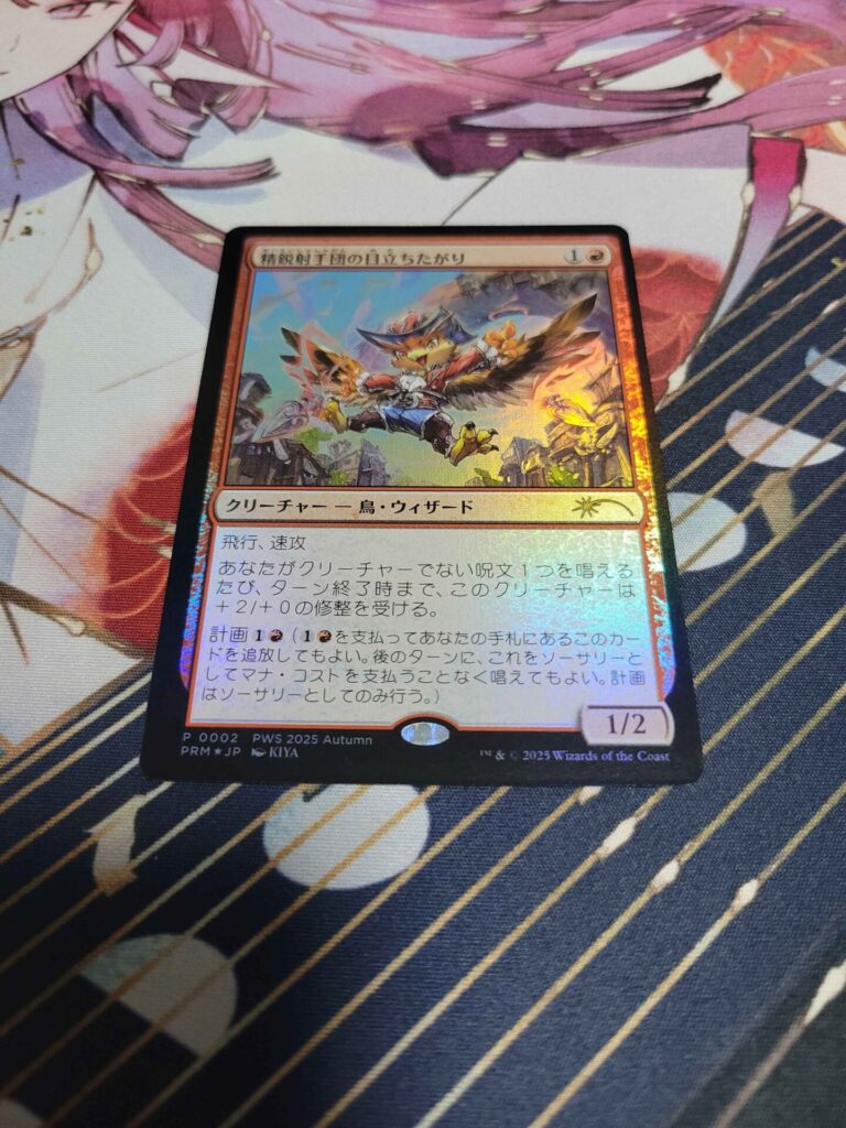 ということで、上位賞の《精鋭射手団の目立ちたがり》もゲット。こっちは禁止は喰らってない、はず。赤絡みのデッキにはしばしば刺さっているイメージ。